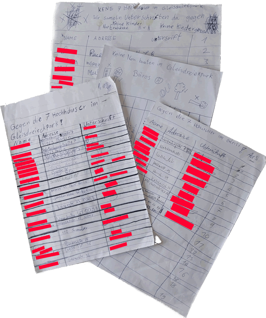 Neben den Spenden werden wir weiter Unterschriften für unsere Petition sammeln. Zwar haben wir am 26. Februar schon einmal die Petition mit 36.371 Unterzeichner:innen im Abgeordnetenhaus übergeben. Aber das ist nur ein Zwischenstand. Hier zu sehen sind 49 Unterschriften, die von Kindern gesammelt wurden. Wir werden sie bei geeigneter Gelegenheit der Politik übergeben, ebenso wie unsere Online-Petition, die weiterläuft.Vielleicht erreichen wir noch die 50.000?