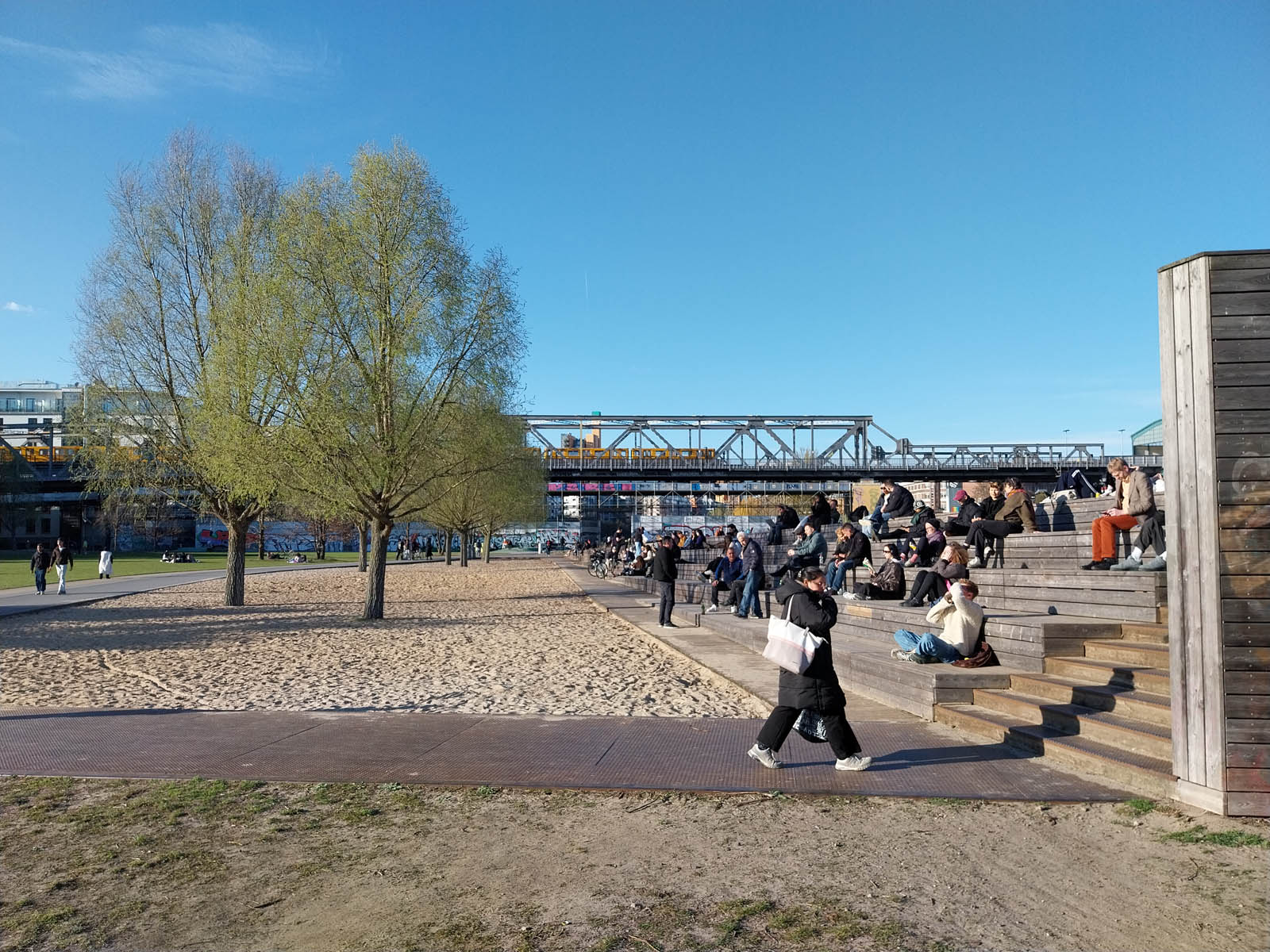 Die 90-Meter-Türme sollen nach wie vor dort stehen, wo der Westpark des Gleisdreiecks nur 60 m breit ist. Die Türme würden sehr negative Auswirkungen haben auf das Stadtklima und auf die Aufenthaltsqualität im Park, egal ob da Wohnen oder Büros drin sind. Das belegen die Gutachten zum Klima, zum Wind und zur Verschattung.